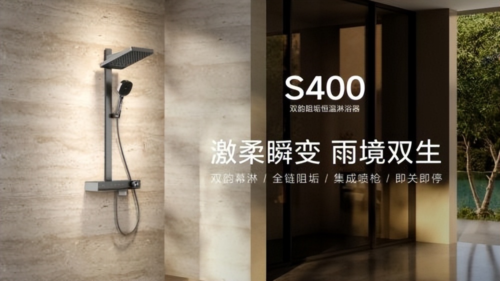 S400淋浴器行业首创“全链阻垢”技术内置阻垢滤芯,从源头高效阻垢全水路洁净防护,有效预防花洒堵塞让每一滴水都澄澈如泉带来持久畅快舒爽沐浴体验。