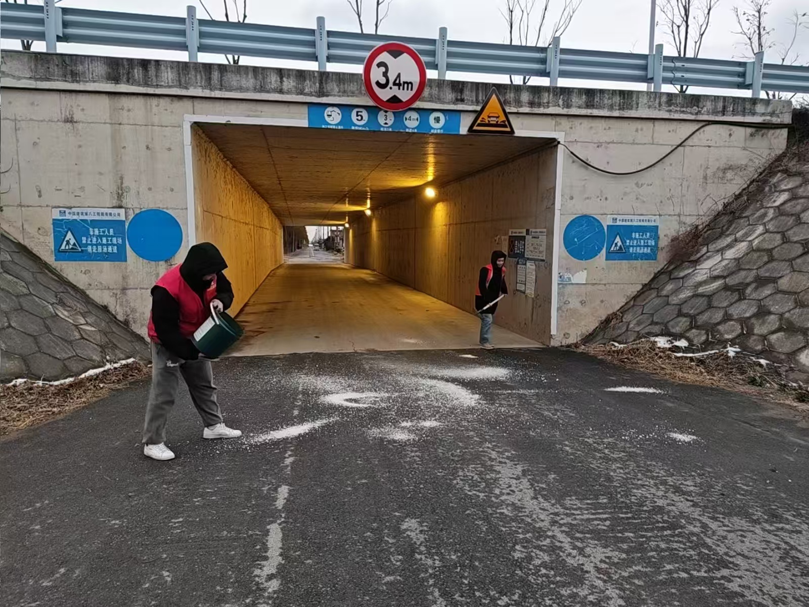 面对严峻天气形势,西团村构建“分工明确、协同作战”的应急防控体系,确保各项防御措施落到实处。村“两委”第一时间召开部署会,成立道路保畅、宣传引导、民生保障3个专项小组,明确村组干部、志愿者与网格员的岗位职责。在道路保畅一线,队员们携带环保型融雪盐,对全村桥梁、坡道、涵洞及主次交通道口、村口要道等人员密集区域开展撒布作业,全力保障道路畅通。宣传引导组通过村广播循环播报自来水防冻、雨雪天气安全出行、用气防护等实用技巧与提示,同时通过微信群推送、入户宣传等方式,帮助群众掌握“温水解冻”等应急方法,避免因操作不当造成设施损坏,确保信息全覆盖。民生保障组聚焦独居老人、五保户等特殊群体,开展“敲门行动”,对全村特殊家庭的水电气线路及取暖设备安全进行逐一排查。