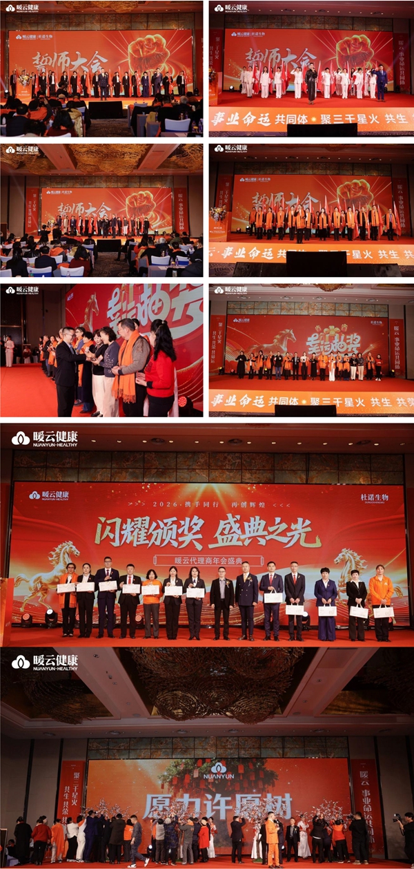 星火聚炬,同心致远。2026年1月16日,以“暖云•事业命运共同体——聚三千星火·共生 共荣 共命运”为主题的暖云健康集团2026年会在郑州希尔顿酒店圆满落幕。近600位暖云家人、核心代理商、行业专家齐聚一堂,历经12小时的精彩议程,共话过往成就,共绘未来五年发展蓝图,在温情与激昂的氛围中凝聚起深耕大健康赛道的磅礴力量。