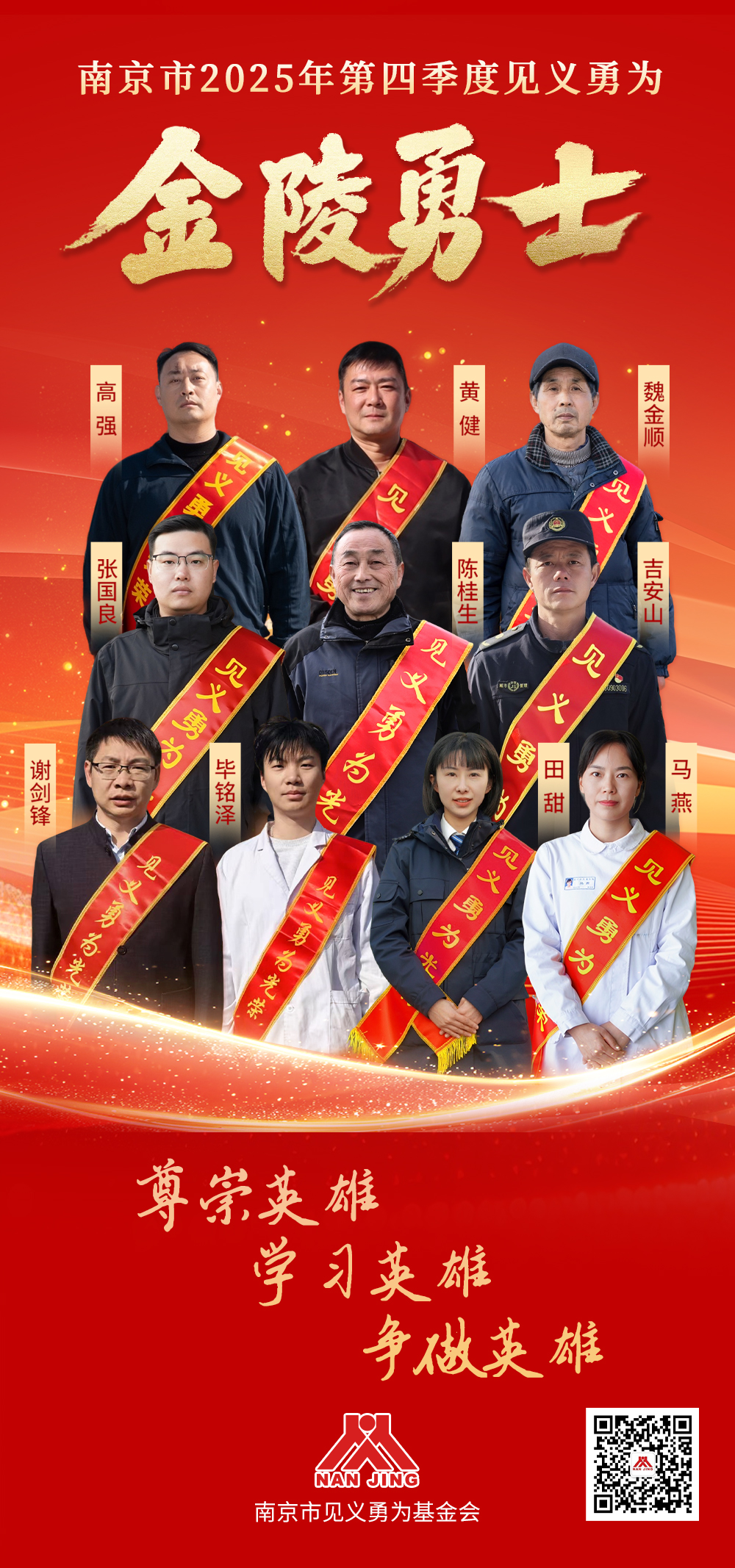 交汇点讯 1月21日,南京市见义勇为基金会正式发布2025年第四季度见义勇为“金陵勇士”,10位见义勇为人员光荣上榜。他们以平凡之躯行英雄之举,生动诠释了南京城的博爱精神与向上向善的社会风尚。