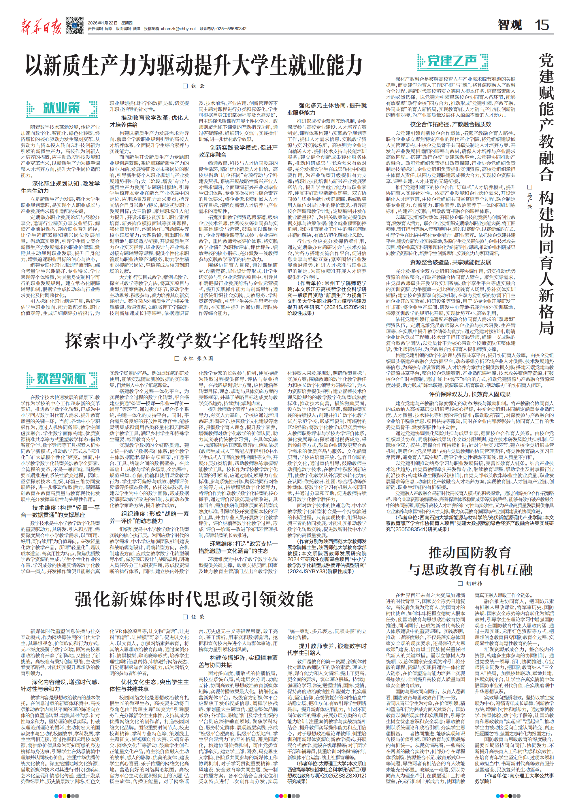 新媒体时代重塑信息传播与社交互动模式,作为网络原住民的当代大学生,其思想观念、价值取向和行为方式,无不深度浸润于数字环境,既为高校思想政治教育开辟了新阵地,又提出了新挑战。高校唯有秉持创新思维、主动探索变革路径,才能切实提升思想政治教育引领力。