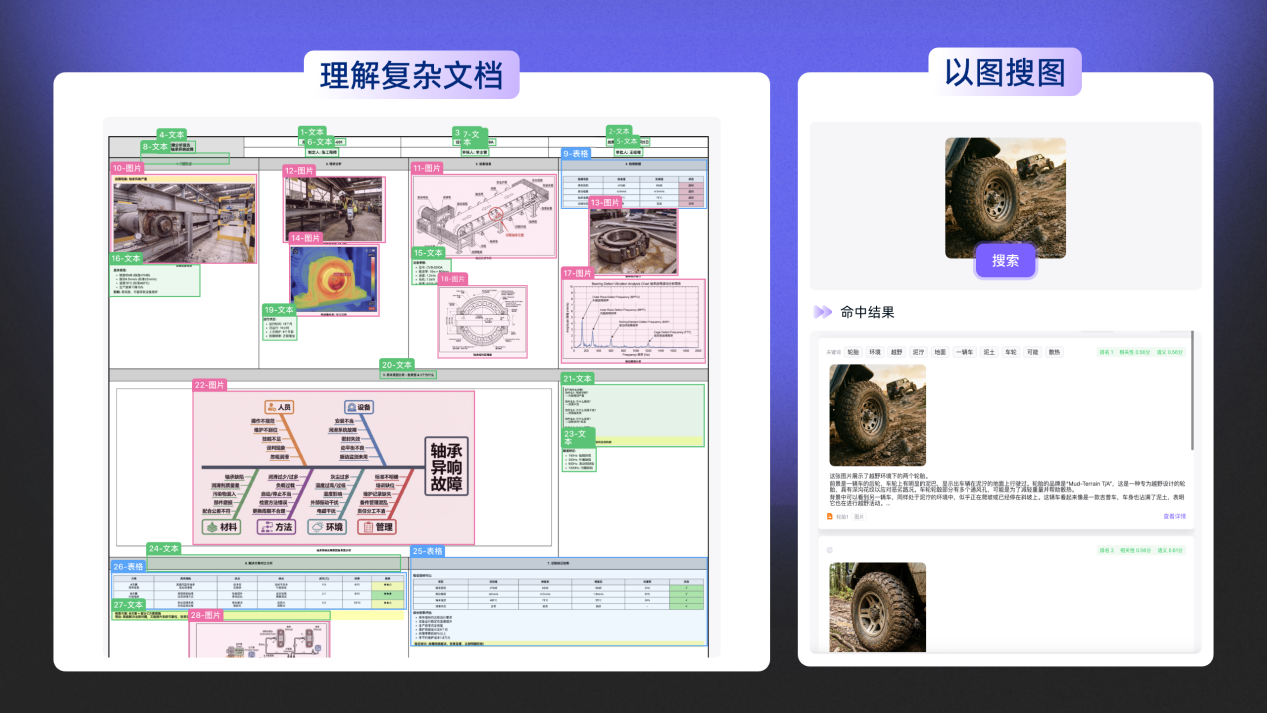 Vision Ultra 多模态知识库基于多模态视觉 / 布局分析、跨模态知识对齐引擎、动态知识剪枝策略及跨模态混合检索等核心技术,构建新一代多模态 RAG 能力,实现对复杂文档、图像与视频内容的深度理解与跨模态检索。从根本上解决传统 RAG 在图片、视频知识处理及文档布局关系保留方面的不足,为企业级 Agent 提供高可用、高准确度的知识支撑。