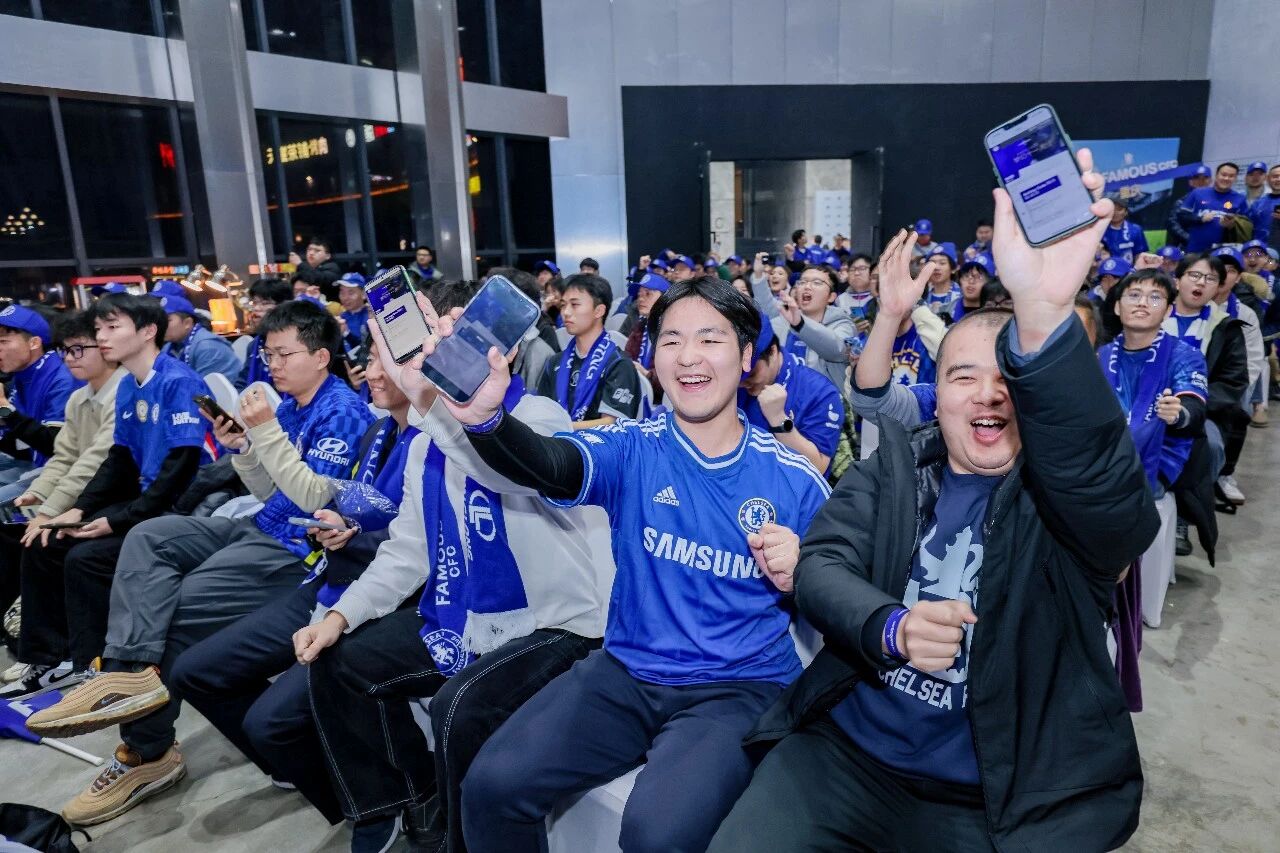 随着夜幕降临,活动进入观赛环节。近300名球迷齐聚观赛会场,通过大屏幕直播观看切尔西对阵布伦特福德的英超比赛。在佐拉和玲珑代表的带领下,球迷们高唱队歌,为蓝军助威。比赛过程中,切尔西展现出强劲实力,上下半场各入一球,最终以2-0击败对手。这一结果让现场球迷沸腾不已,许多人欢呼雀跃,称这是“难忘的蓝军记忆”。