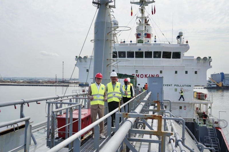 活动以隆重的启航仪式拉开序幕。随后,出席领导与嘉宾实地参观了黑角港口储气库核心设施,深入了解其在接收、储存、技术应用、运营安全控制方面的能力,并登上“MT KINGSTON”船进行现场考察。