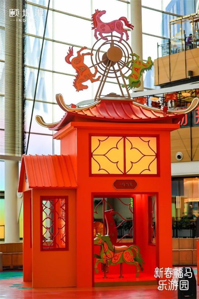 手持“福马金币”步入冬季花园,便踏入一场连接传统祥瑞与当代趣味的沉浸之旅。登上“福马转转乐”,在齿轮精密的韵律与流动的光影间旋转,仿佛乘着欢笑穿越古今交织的童话时空;行至黄金树下,于璀璨枝叶间许下来年愿景,拍下一张满载吉兆的好运照片;莅临“行运小镇”,还可体验“一马当先”竞速装置、“推币纳福”好运游戏以及“招财进宝”趣味互动。消费者可以在现场收集新春定制好礼,珍藏独属的美好记忆。