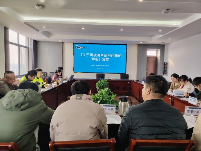 会议首先对上级印发的关键文件进行了宣贯解读,重点学习了《关于两项清单适用问题的解答》,针对网约车、超限运输等常见领域,以及“改正”与“教育引导期”的适用、违法行为认定标准等具体问题进行了详细剖析;深入讲解了《关于明确交通运输行政执法裁量工作若干问题的指导意见》,为规范行使自由裁量权、确保执法公平公正提供了明确指引。同时,会议还提醒全体人员关注学习最新制度文件,明确年度执法重点,并充分利用江苏交通综合执法“知识库、案例库、课件库”及线上“优秀大队长讲堂”优质资源,持续提升专业素养。济川中队叶向阳谈道:“裁量指导意见的学习,帮助我们进一步统一了执法尺度,特别是在情节认定与处罚匹配上,感觉更有规范可循,也更有利于实现执法公平。”