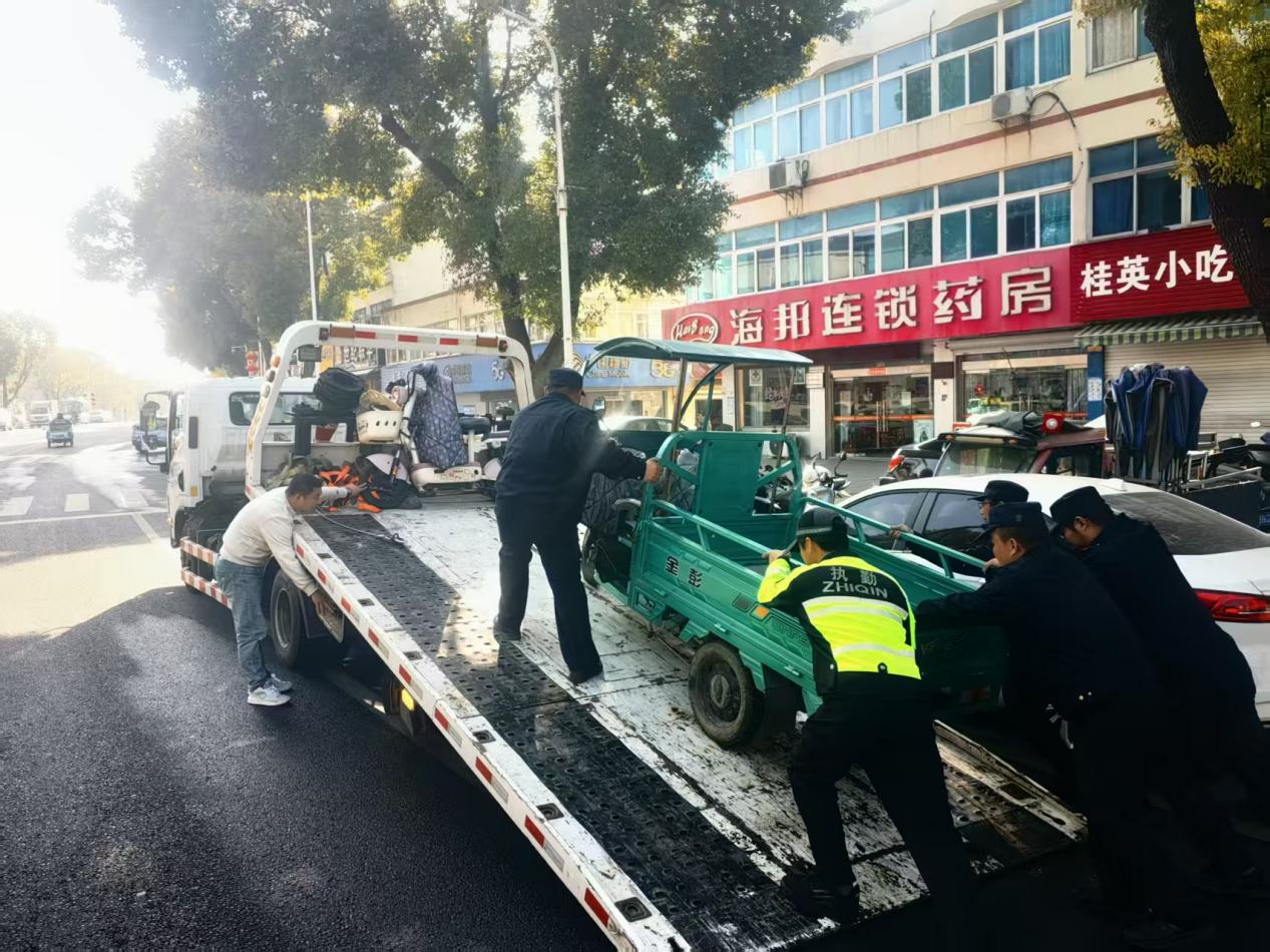 执法过程中,工作人员坚持“教育为先、疏导为主”的原则,对现场违停车主进行面对面普法宣传,引导其将车辆规范停放至指定区域;对于车主不在现场、长期占用通道或严重妨碍通行的车辆,则依法实施拖移处置。在海邦连锁药房门前路段,执法人员合力将一辆违规占道的三轮电动车拖上清障车,这一举措得到过往群众的理解与支持。