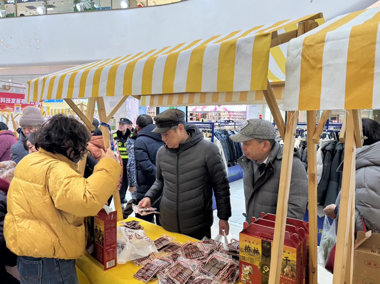 在非遗美食展位前,市民李女士正带着女儿试吃桥林茶干和五香牛肉,孩子嚼着牛肉,含糊地说:“妈妈,这个牛肉好香!” 李女士笑着回应:“这是咱们浦口的百年老手艺,今天不仅买年货,还能让你知道家乡的美食故事。” 她告诉记者,自己特意带孩子来感受年味,“平时超市买东西很方便,但市集的氛围不一样,能看到新鲜的农产品,还能和农户聊聊天,心里更踏实。”