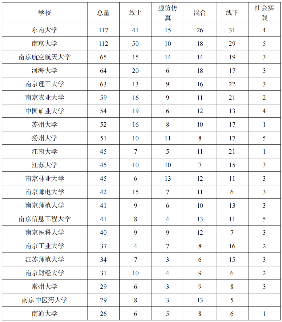 江苏部分高校入选国家级一流课程情况(>25门)