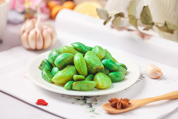 较高的酸度、较低的温度和适宜的时间是促使腊八蒜变绿的重要因素。在腊八节当天腌制能够使除夕夜的腊八蒜处于“翠绿”的最佳状态