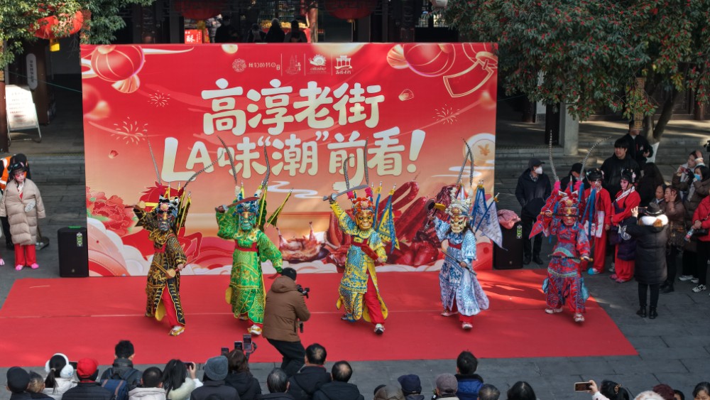 活动期间,淳味年货展区汇聚高淳地道风物、绿色农产品、非遗手作及特色文创,吸引众多游客驻足挑选。非遗民俗展演区通过巡游互动、技艺展示与戏曲表演,让传统艺术在节日场景中鲜活再现。年俗体验区则开展写春联、剪纸手作、传统游戏等项目,让游客在参与中沉浸式感受淳朴年文化。暖冬美食区免费提供高淳特色小吃试吃,以热气腾腾的滋味传递冬日温情。