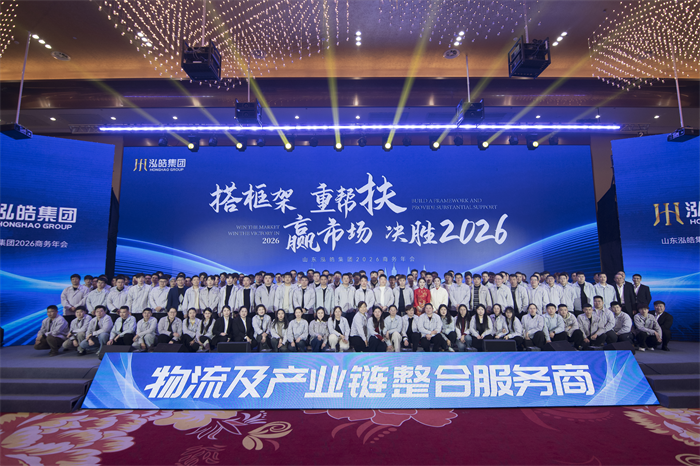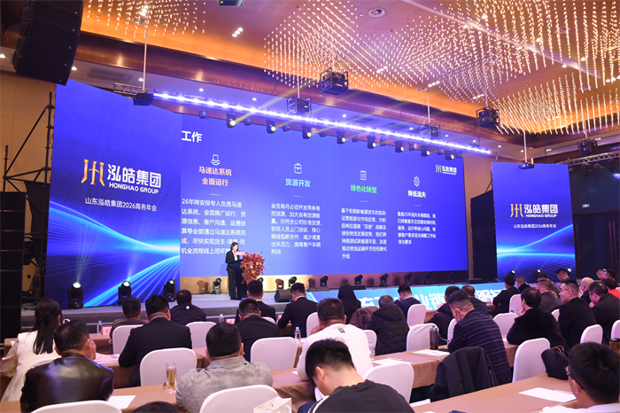 1月20日,山东泓皓2026商务年会在潍坊隆重举行,以“搭框架·重帮扶·赢市场·决胜2026”为核心主题,汇聚全国子公司代表与集团核心团队,系统总结过去一年经营成果,正式发布2026年集团发展战略规划。