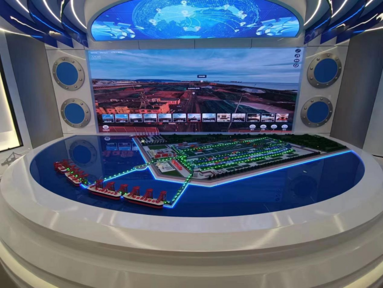 动态数据可视化:沙盘通过LED光带动态演示港口吞吐量的实时变化和未来预测趋势。同时,集成的大屏幕会同步更新风速、潮汐、泊位占用率等关键运营指标,让管理者对港区状况一目了然。
