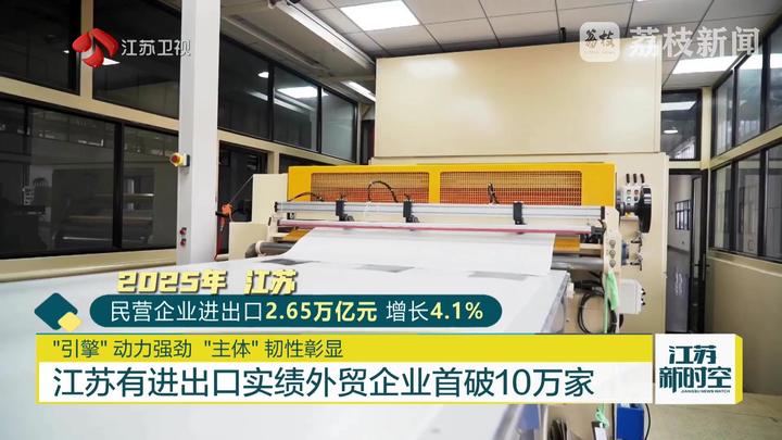 经营主体的数量规模,是衡量区域经济活力与开放能级的核心“晴雨表”。南京海关最新统计数据显示,2025年江苏有进出口实绩的外贸企业数量迈上新台阶,首次突破10万家。