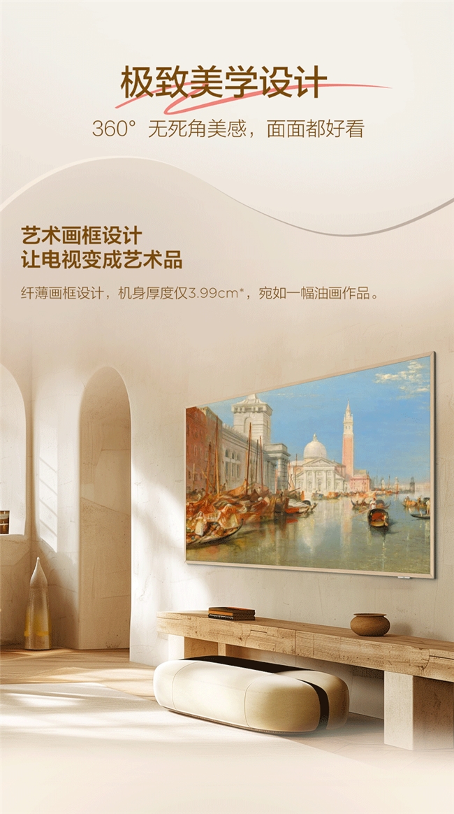 要想家里有格调,装修可不能只盯着硬装和软装,后期家电的风格搭配同样关键,尤其是占据客厅“C位门面”的电视!刷某薯时总能刷到各种吐槽:座装电视又丑又占地方;挂装也难逃土气感;选择最流行的内嵌,虽然减少了占用面积,可市面上大多电视机身厚重,内嵌后又显得格外不协调,更麻烦的是,后续想换台新电视都受限于内嵌尺寸,很容易打破原本电视墙的美感。直到艺术电视的出现,才终于精准破解了这些困局,它不仅能适配不同装修场景,更能让客厅格调直接翻倍。