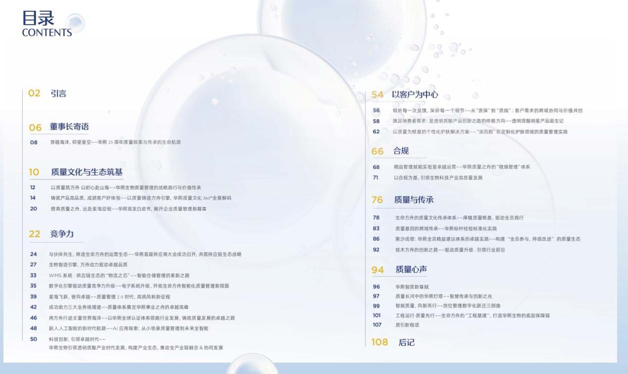 此次《生命方舟》质量白皮书的发布,既是华熙生物对25年质量管理实践的系统复盘,也是向全球市场作出的质量承诺。未来,华熙生物将以这份白皮书为指引,持续以体系为骨架、以文化为灵魂、以科技为动力,不断夯实质量优势,携手全球合作伙伴,以卓越质量守护生命鲜活,引领全球生物科技行业高质量发展。