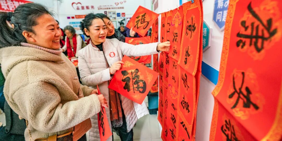 1月13日,南京市溧水区徐溪社区新时代文明实践站举行“字画绘笔 献您墨宝”迎新春活动,邀请10多名书法家为居民写春联送祝福,现场年味浓浓。朱红生 摄 视觉江苏网供图