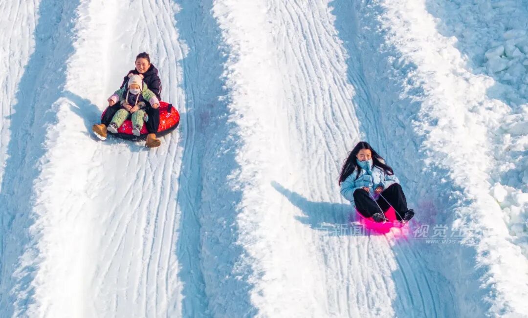 1月24日,宿迁市泗洪县青阳街道冰雪大世界游乐园,迎来客流高峰。大人和孩子在冰天雪地间沉浸式体验冰雪项目乐趣,畅享周末美好时光。周鹏 摄 视觉江苏网供图