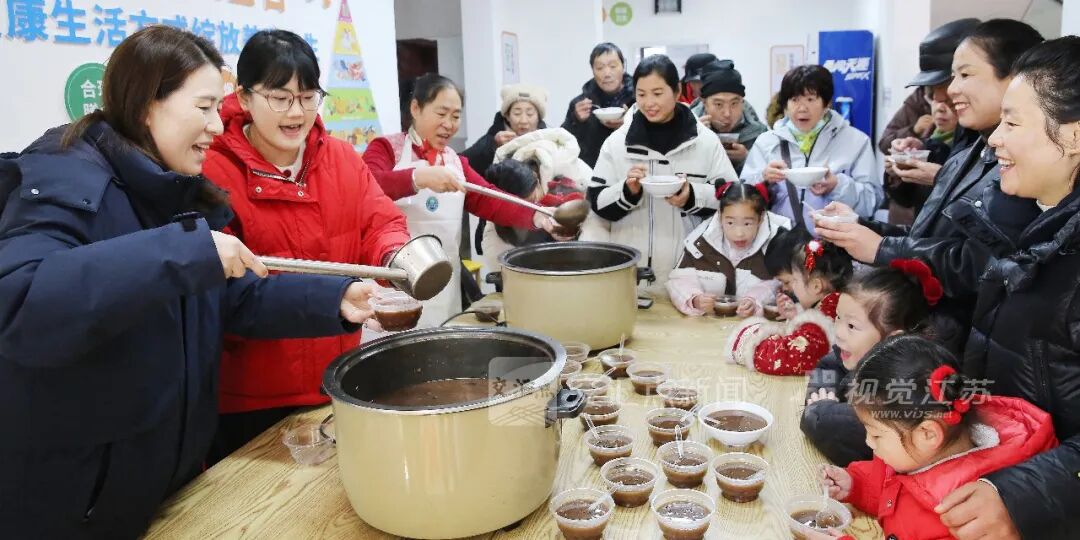 2026年1月22日,“香粥暖邻里 墨香迎新春”喜迎腊八节活动在连云港市连云区云山街道云景社区为民大食堂举行,通过写春联、送祝福、喝腊八粥等形式,为居民和幼儿园小朋友送上节日问候与祝福。朱华南 张梦靖 摄 视觉江苏网供图