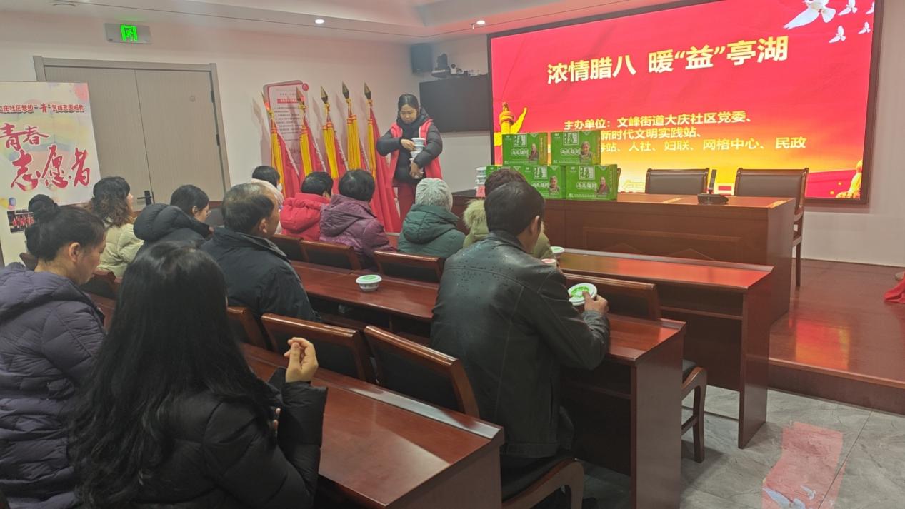 大庆社区围绕“浓情腊八 暖‘益’亭湖”主题,将民俗分享与社区关怀有机融合。活动现场,工作人员向居民普及全国各地腊八习俗,在欢声笑语中传递传统文化魅力。一碗碗热粥依次发放,一次次亲切交流拉近了邻里距离,让居民在感受节日氛围的同时,增强了对社区的归属感。此次活动以传统节日为载体,将文明实践与民生服务深度融合,让优秀传统文化在基层落地生根。