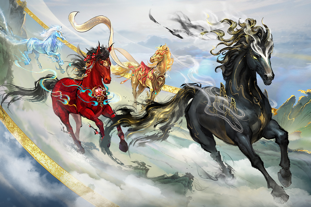 此次联动定位为一场“东方美学共创”,“九州神骏”中“玄墨、琥珀、朱砂、皓雪”四骏的设计,分别融入了丹霞地貌的色彩意象、雷霆疾驰的动感、文道梅印的风雅以及冰雪守护的温情,力求在虚拟世界中构建一个兼具美学高度,又承载厚重文化灵魂的数字形象,进一步将自然、历史、传说三重维度系统融入游戏核心内容,既呼应国家“推动中华优秀传统文化创造性转化、创新性发展”的号召,也体现了数字技术与文化创意深度融合的行业趋势,为文旅资源的数字化活化提供了具有参照意义的实践路径。