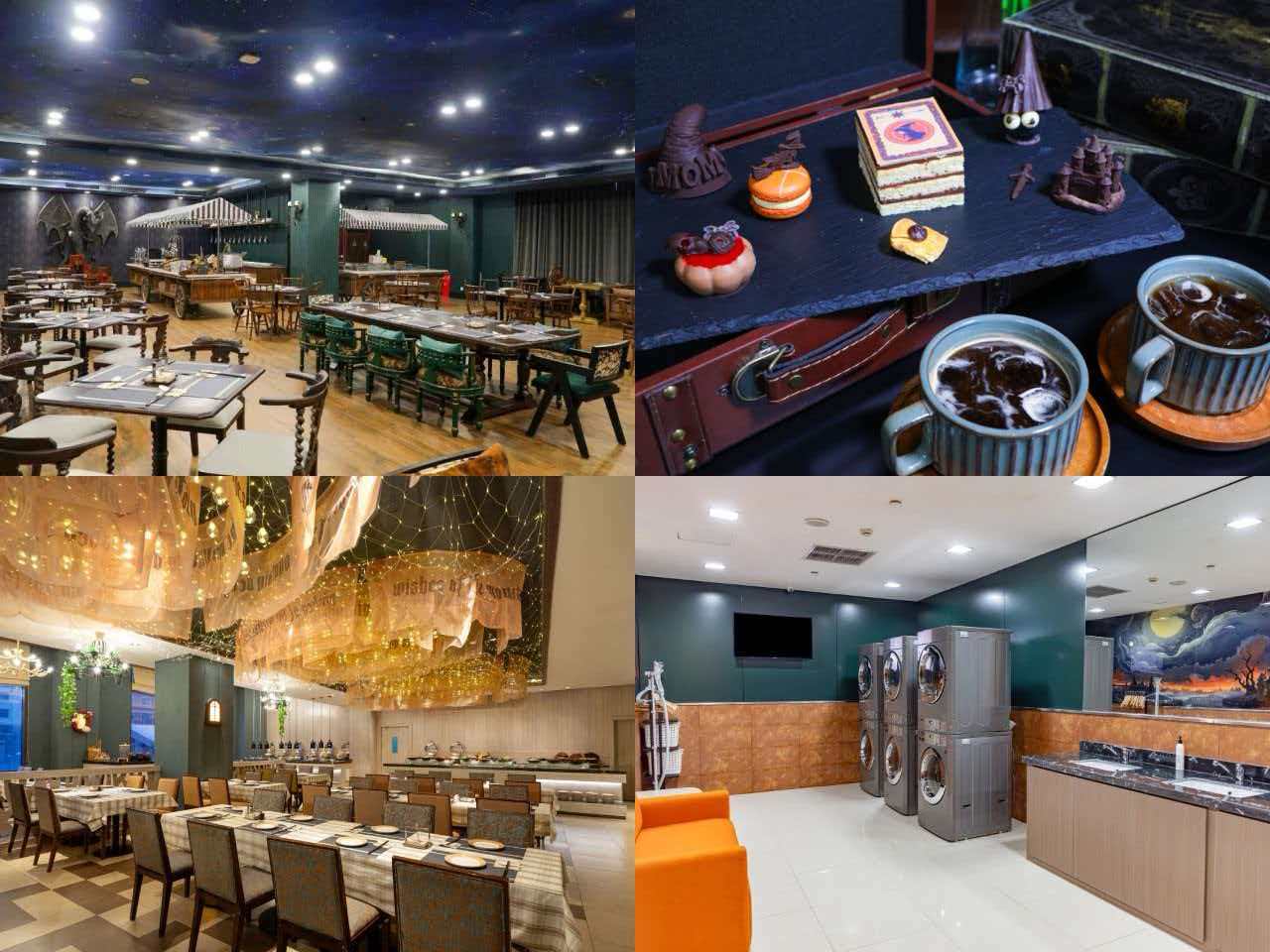 餐饮体验同样充满奇思妙想。位于酒店二层的Fancy Yard花苑餐厅,推出魔法森林披萨、深渊菌巢契约烙、女巫汤等特色主题餐食,美味与趣味并存。一层的花苑餐厅Ⅱ及Momo Bar大堂吧,从环境装饰到甜品设计均深度契合魔法主题。尤其是魔法主题下午茶,将黑巧克力慕斯打造成古老魔法书的形态,盛放在镶嵌“宝石”的宝箱中,被宾客笑称为“霍格沃茨在长白山开设的秘密分部”。