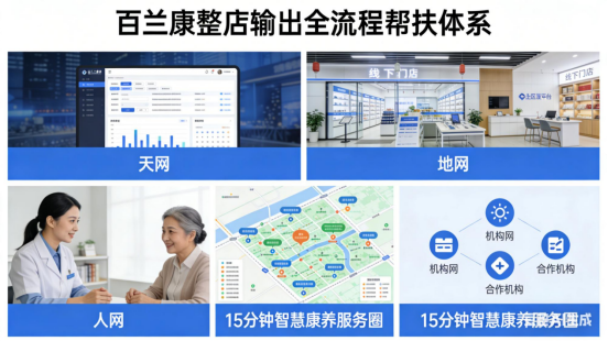 行业生态化、服务标准化是大健康未来发展趋势的关键特征。百兰康摒弃传统品牌 “重营销、轻服务”的乱象,打造 “整店输出 + 全流程帮扶”的合作经营体系,从门店选址、装修设计到人员培训、客源导流,提供九大帮扶政策,让无行业经验者也能轻松上手。通过 “天网 + 地网 + 人网 + 机构网”全渠道帮扶,结合标准化的 “检辨调评管” 五位一体健康管理服务,构建起“15 分钟智慧康养服务圈”,完美契合大健康未来峰会倡导的“规范化、规模化、生态化”发展理念。
