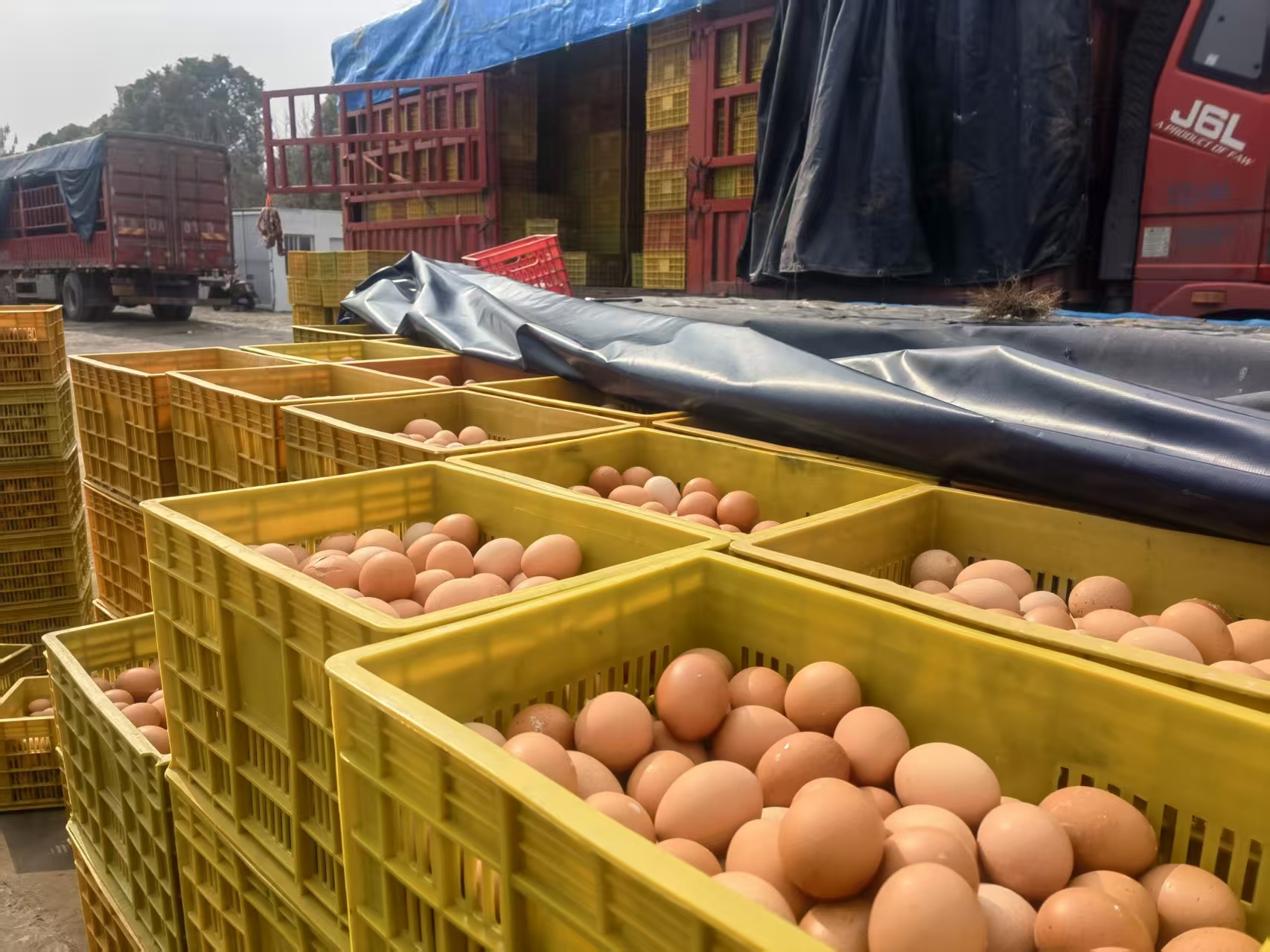春节脚步临近,鸡蛋也步入传统消费旺季,市场需求量迎来大幅攀升。天刚蒙蒙亮,南京众彩的蛋类交易区就已经热闹非凡。四五辆满载鸡蛋、从河南商丘远道而来的大挂车稳稳停靠,工人师傅们紧锣密鼓地开始卸货。王舒怡表示,近期鸡蛋销售持续升温,鸡蛋货源量足、周转率高,完全可以保障春节期间的鸡蛋市场供应。