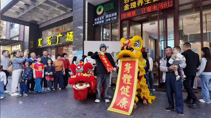 “以前看醒狮都在祠堂前、广场上,这么近距离走进店里来拜年还是第一次,感觉特别亲切,福气都送到手边了!”一位玉器店店主接过醒狮口衔的定制利是封,里面是一份特别的新春祝福。在黄飞鸿纪念馆前,醒狮与市民趣味“过招”;在千灯湖畔,它们又化身派送“新春灵感盲盒”的惊喜使者,与市民合影互动。