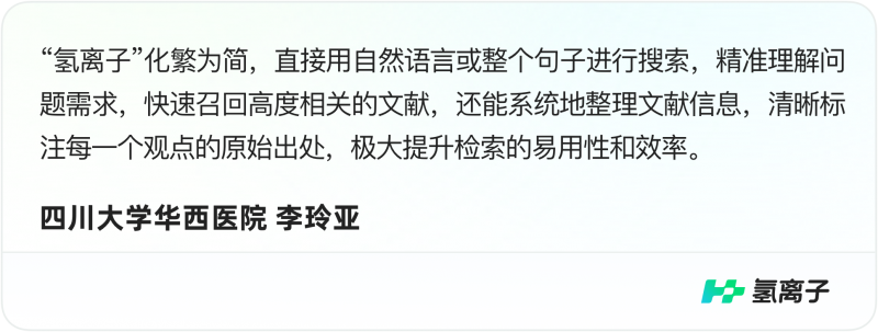为此,“氢离子”构建了一个真正面向临床与科研需求的一站式平台,覆盖从问题提出、信息检索、内容研读到证据验证的完整工作流。