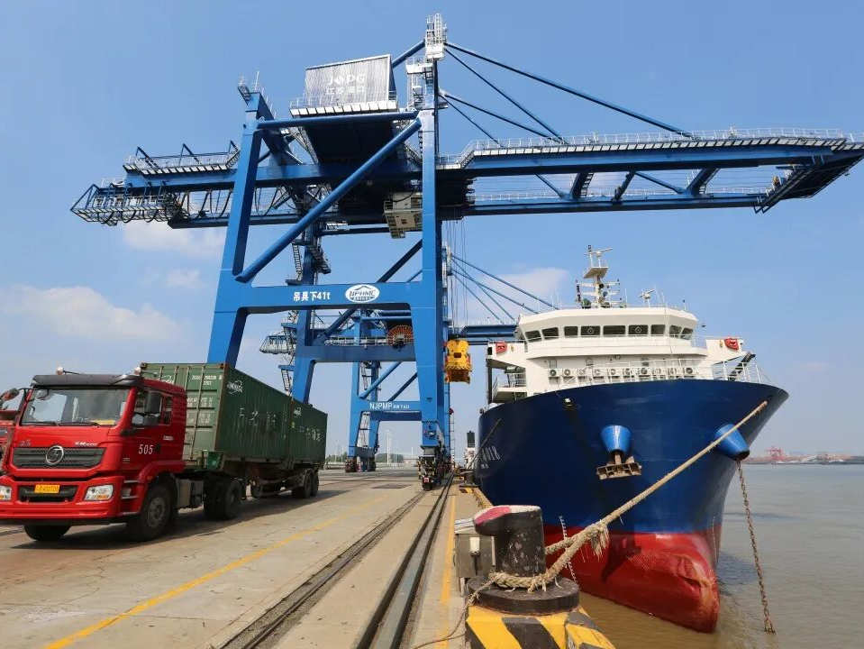在浦口开发区的战略布局下,七坝港区不断开辟外贸航线、深耕临港产业、提升服务水平,从以内贸为主的码头升级为内外贸并举的综合性枢纽,成为“江北制造”通江达海的关键门户。仅2024年,就比2023年新增10万标箱,且大部分来自外贸业务。