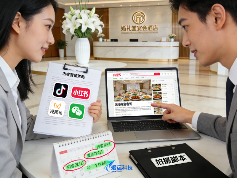 婚运科技不仅仅是在执行标准化的运营流程,其团队还在行业内首创了一套针对婚礼堂和宴会酒店的内容营销方法论。通过精确的数据分析和目标客户画像,婚运科技能够根据不同酒店的需求量身定制内容营销方案,确保每一条广告或内容都能触及到最合适的受众群体。