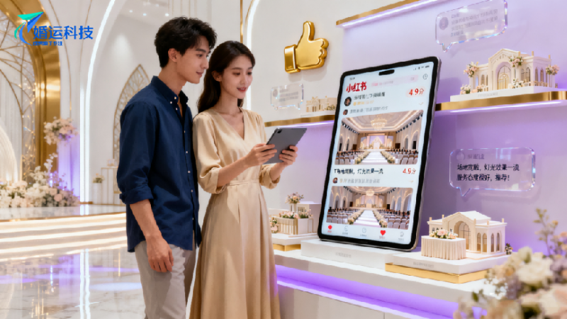 平台资源整合:婚运科技与美团、大众点评等本地生活平台以及抖音、小红书等新媒体平台深度合作,通过全面的整合资源,实现了对婚礼堂宴会酒店品牌的全方位推广。