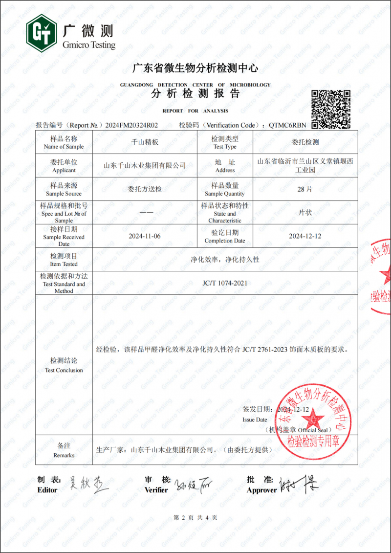 与此同时,千山板材核心产品凭借出色的环保性能与近乎零气味的表现,成功荣获由中国国检集团颁发的近零气味健康建材产品认证证书。这一认证充分彰显了千山板材在降低 TVOC 等污染物、攻克室内异味难题方面的深厚技术实力。