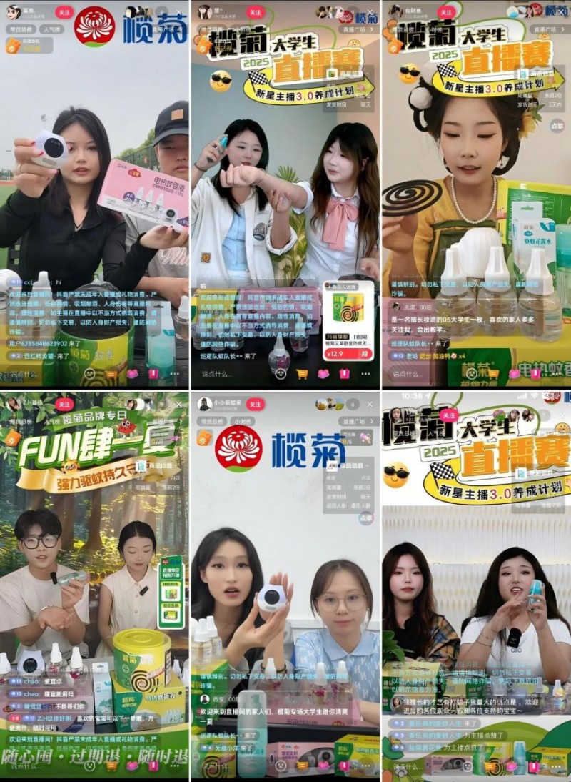 此外,榄菊联合创意星球首创“榄菊大学生直播赛”,自2023年赛事启动以来,每年均吸引百余所院校的参与,三年累计销量达30万+。直播赛不仅打通了从创意创作到销售的转化链路,还通过大学生在直播间的多样互动形式与创意玩法,将直播升级为一场青年创意营销事件,提升了品牌口碑与声量。