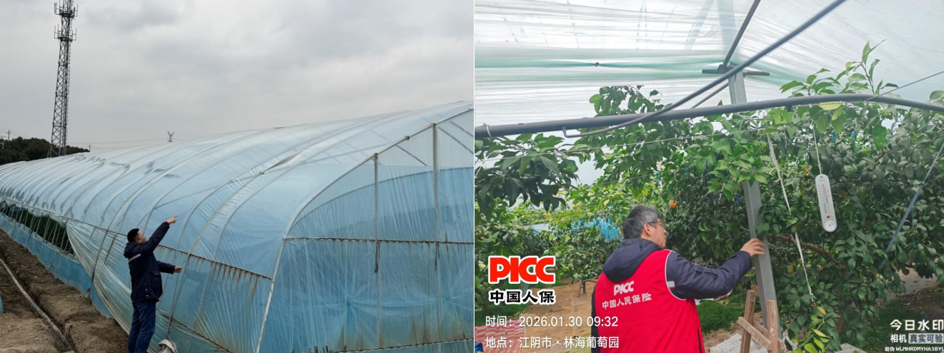 针对农业生产的薄弱环节,江苏人保财险组建专项服务团队,深入田间地头开展防灾减灾指导。团队成员运用专业技术意见,现场手把手教授农户大棚加固、保温增温及积雪清理等关键技巧。此时,查勘定损的“理赔员”悉数化身为灾前排查隐患的“安全员”。他们聚焦关键风险点,逐一评估大棚的牢固程度与抗压能力;同时严密检查棚膜的完整度、压膜线的密度与固定情况,确保棚膜不被强风吹掀或积雪压垮。针对巡查中发现的部分大棚压膜线松动、钢架接头轻微锈蚀等隐患,服务团队当场提出加固建议,并主动协助农户完成应急处理。“以前总觉得保险是出事以后赔钱,没想到现在下雪前就来帮我们检查大棚,教我们怎么预防,心里踏实多了!”一位正在接受指导的种植户感慨道。