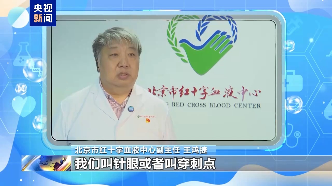 北京市红十字血液中心副主任 王鸿捷:一定要注意保护好“针眼”或者叫穿刺点,要压好穿刺点,避免皮下渗血,导致血肿,也是献血后的不良反应发生最多、占比最高的类型。
