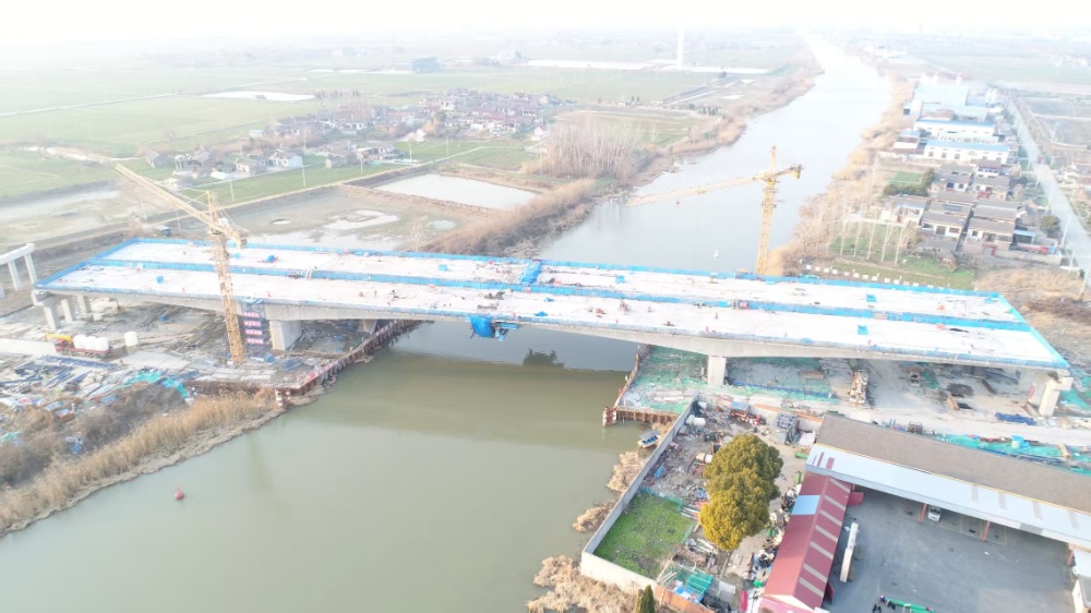 近日,如皋至常州高速公路黄桥至泰兴段全线首跨钢箱梁吊装完成,标志着项目桥梁上部施工迈入新阶段。