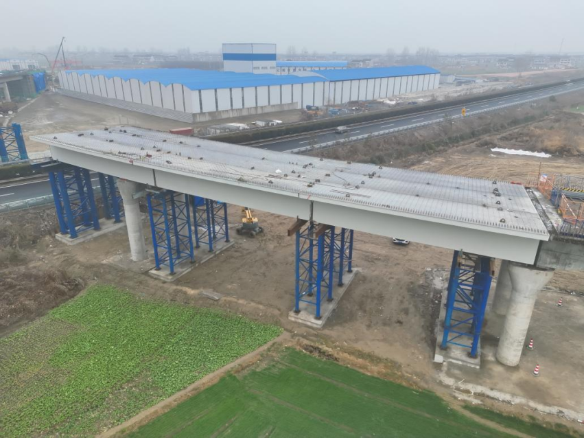 如皋至常州高速公路黄桥至泰兴段全线首跨钢箱梁吊装完成