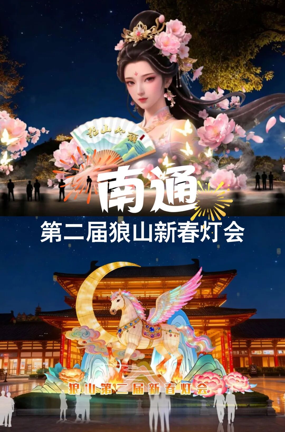 灯会以“灯火映狼山,瑞气满通城”为主题,精心打造《以梦为马》《花仙胜境》《招财纳福》等20余处灯组造型,讲述吉祥如意的新春故事,打造沉浸式观灯体验。