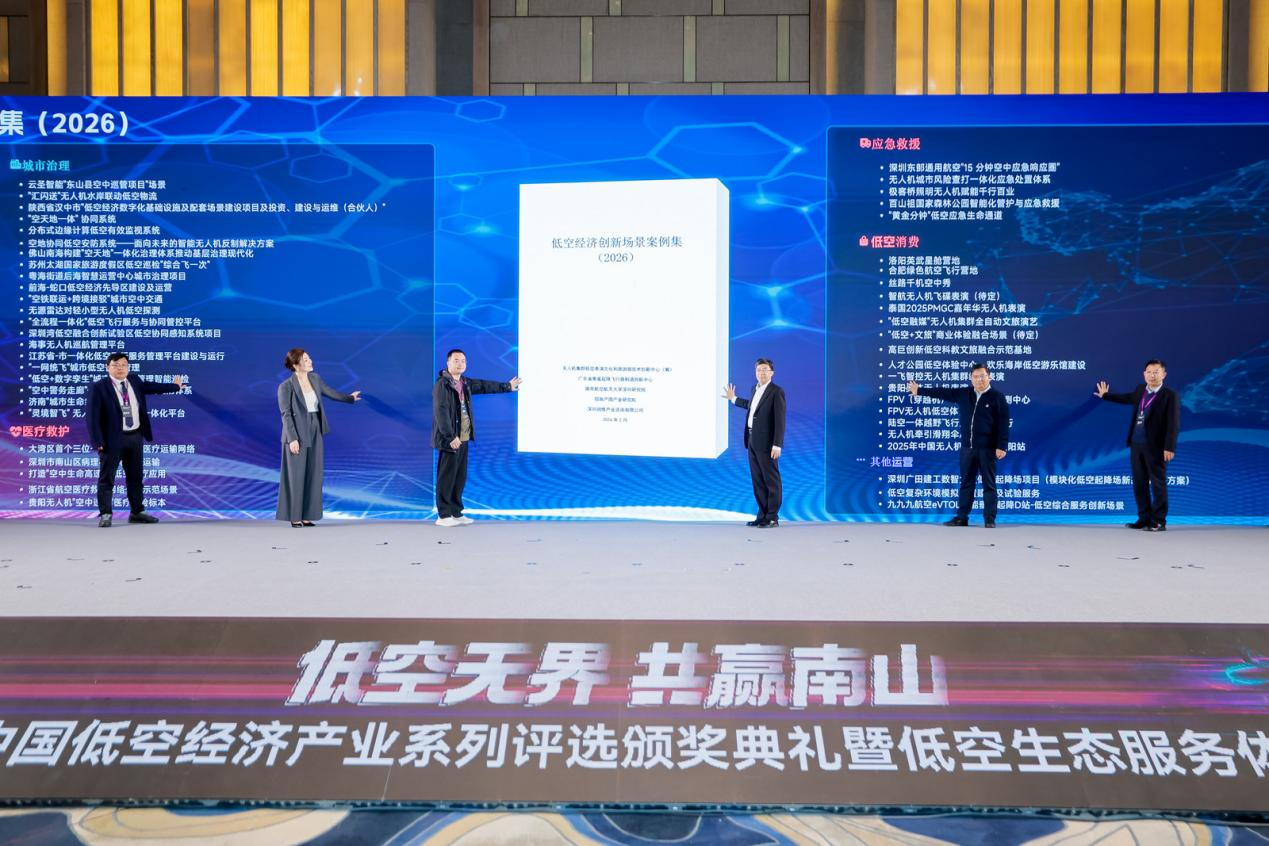 在当日下午举行的颁奖典礼暨低空生态服务体系推介及战略签约活动上,无人机集群低空表演文化和旅游部技术创新中心(筹)联合广东省垂直起降飞行器制造创新中心、南京航空大学深圳研究院、招商产园产业研究院与深圳润维产业咨询有限公司联合发布《低空经济场景创新案例集(2026)》。该案例集的发布,旨在系统梳理和推广低空经济各领域的创新应用实践,为政策制定、技术研发与商业投资提供重要参考。
