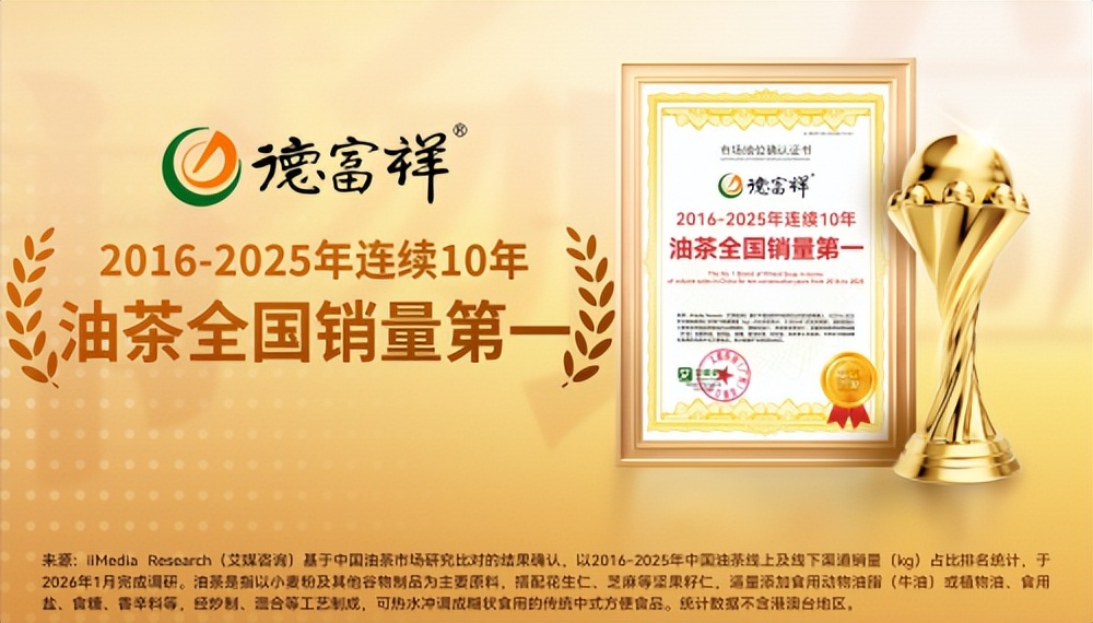 近期,德富祥荣获全球领先的新经济产业第三方数据挖掘和分析机构iiMedia Research(艾媒咨询)授予的“2016-2025年连续10年油茶全国销量第一”市场地位确认。