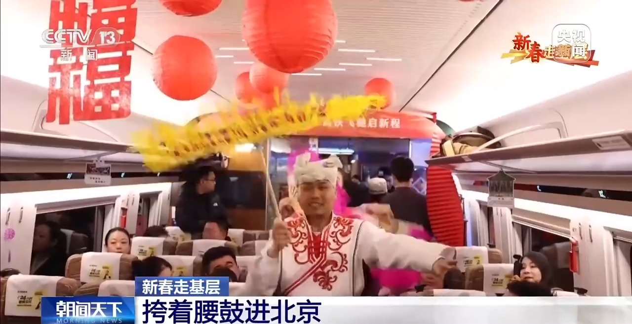 总台央视记者 郑连凯:现在的时间1月26日早上7点30分,延安的天刚蒙蒙亮,腰鼓队队员已经赶到延安站,稍后他们要搭乘延安开往北京的G359次首发列车。