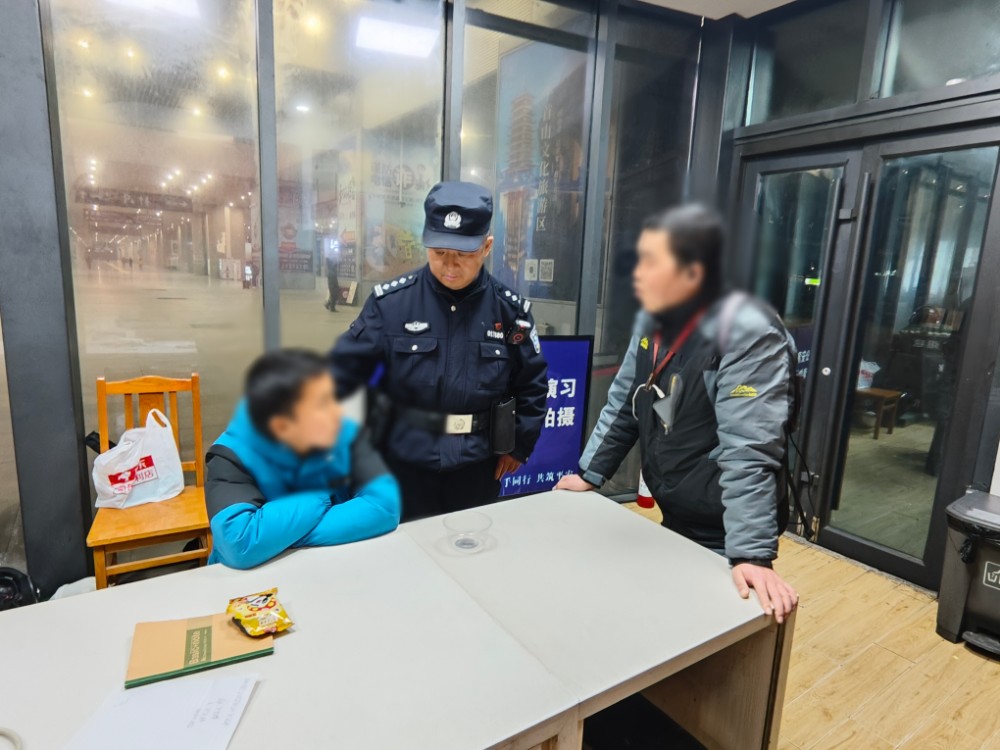 智慧警务系统也发挥着巨大作用,大数据分析预判客流高峰点位,实现精准布警,高清摄像头助力寻找走失人员。临近中午,一名十岁男孩在南京南站广场与家人走散,巡逻民警嵇宁春将男孩带回警务室,并通过孩子提供的信息联系上了父亲。嵇宁春笑着提醒:“春运人多,一定要牵好孩子的手,最好在孩子身上放张联系卡片。”