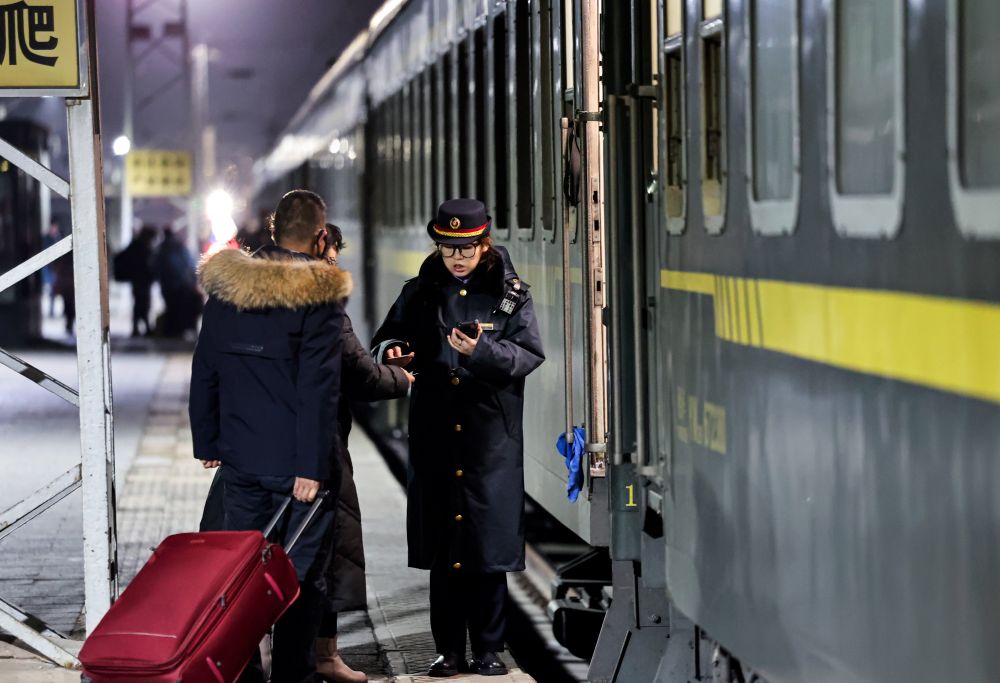 2026年2月2日,旅客在哈尔滨火车站乘车出行。新华社发(原勇 摄)