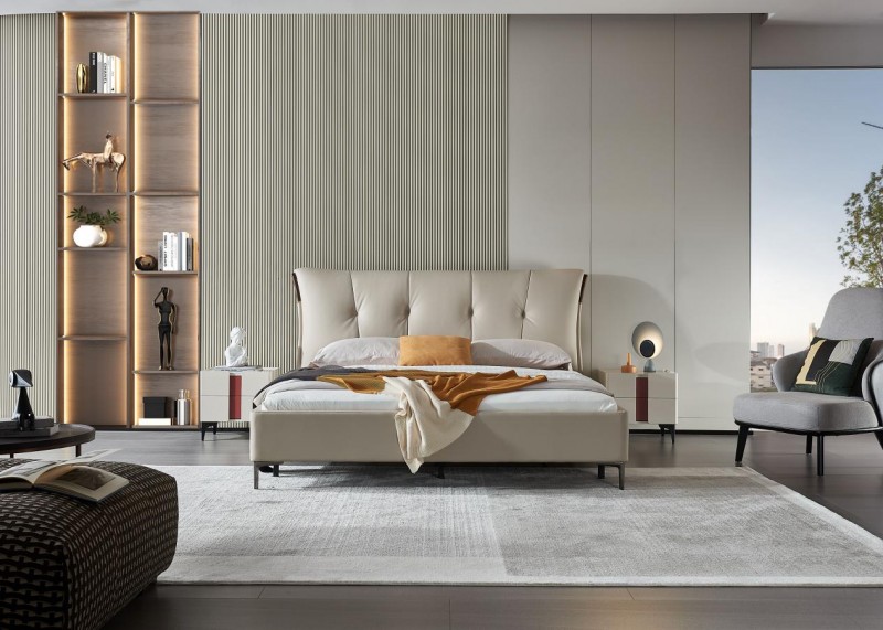 从沙发到客餐厅套件,再到卧室家具,栢顿家居的每款产品都深度践行“实用与美观共生”的原则。其意式真皮软床便是最好的例子,它以极简美学重构卧室体验:经典奶白色调自带治愈感,轻松营造出安静温暖的空间氛围;大靠背溜背设计搭配高密度海绵饱满填充与拉点绗缝工艺,视觉立体且倚靠舒适;甄选优质头层小牛皮,触感细腻透气,兼具高级质感与耐用性;床体采用碳黑色金属高脚设计,便于日常清洁打扫,避免积灰受潮。无繁杂线条的简约外形,可适配多种现代家装风格,让卧室回归松弛本质。