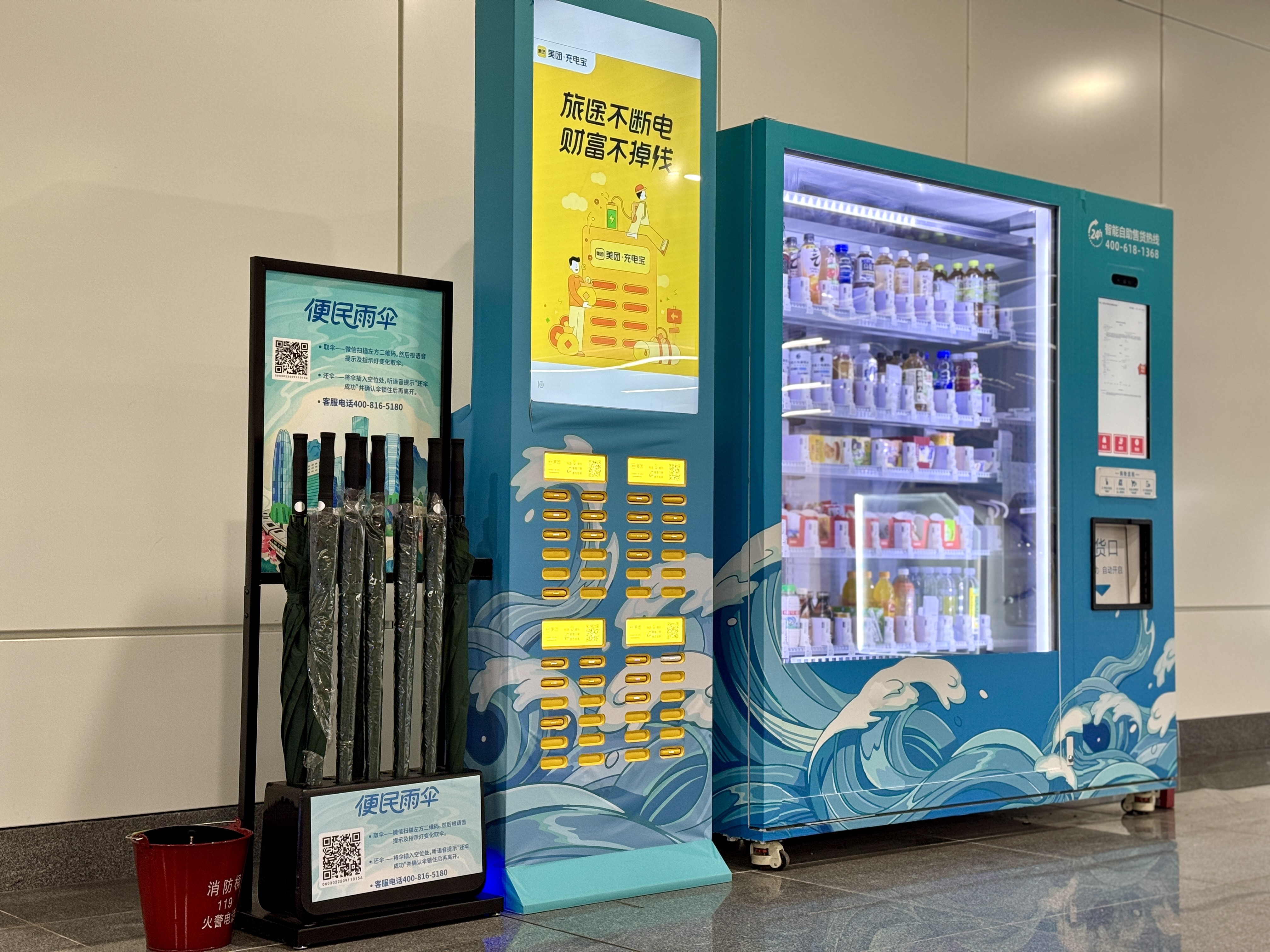 自助场景聚焦“高效便民”,通过自助寄存柜、自助便民机、自动售货机、充电宝、雨伞机等设备,构建全天候服务体系;