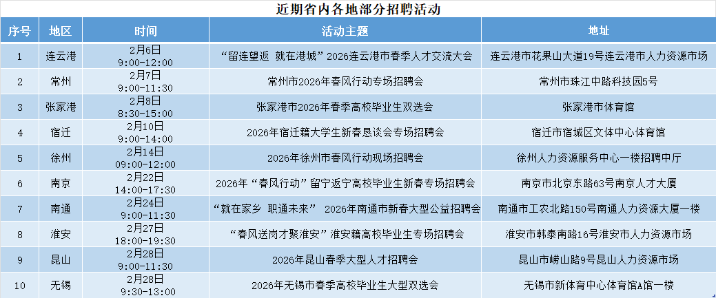 130场网络招聘会还不够?我们还汇集了江苏省内的招聘活动,帮助同学们就近找到心仪工作!