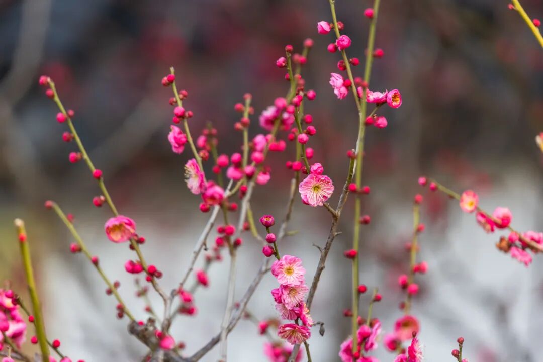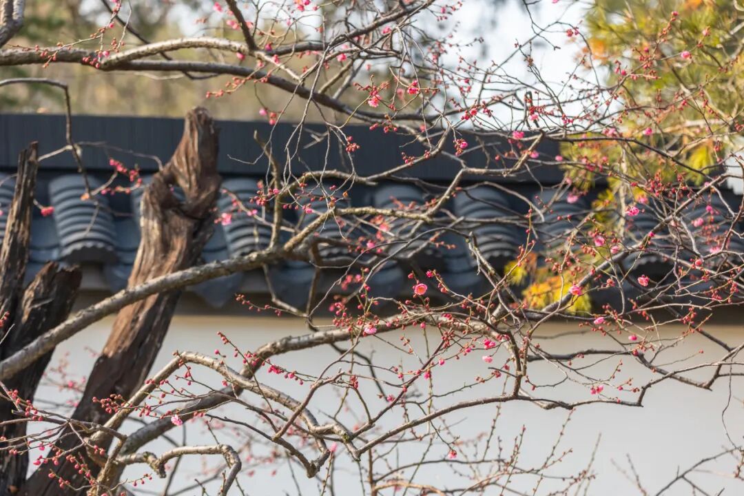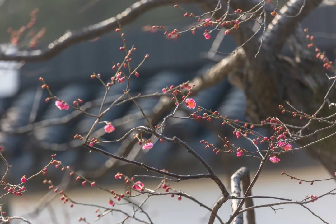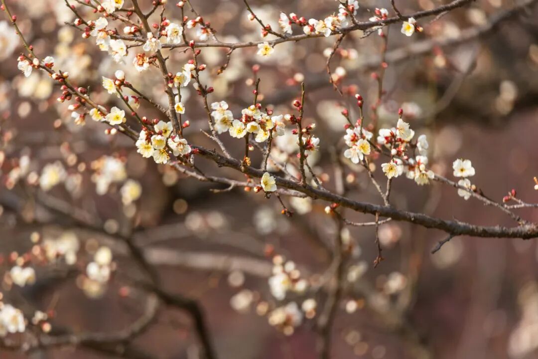 宫粉、白梅孕苞待放,清姿款款