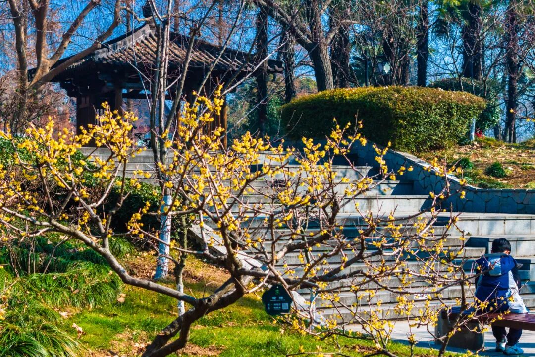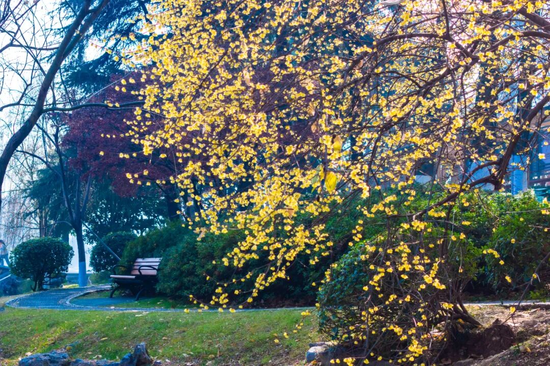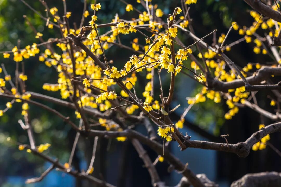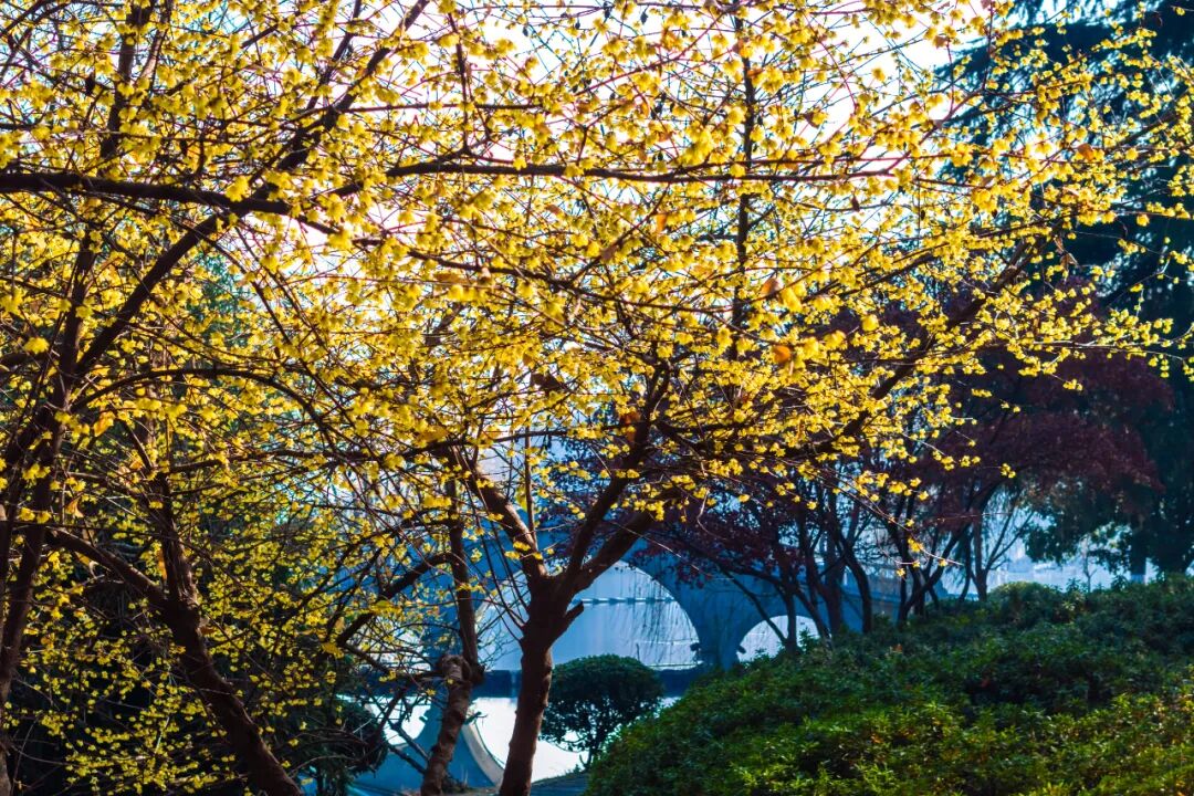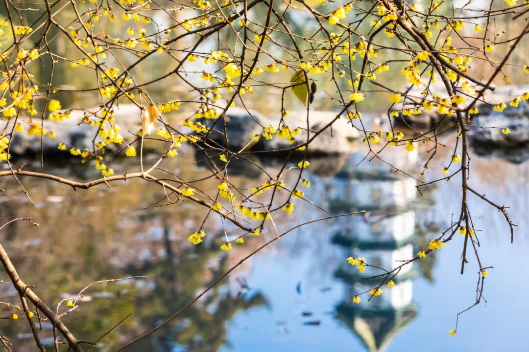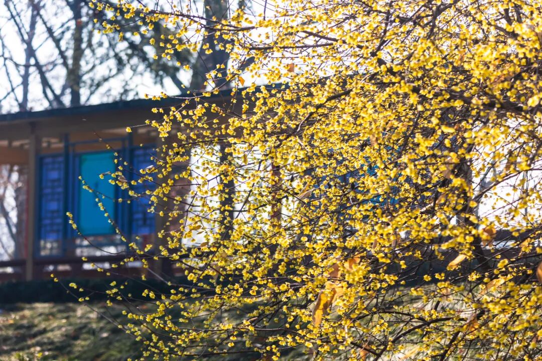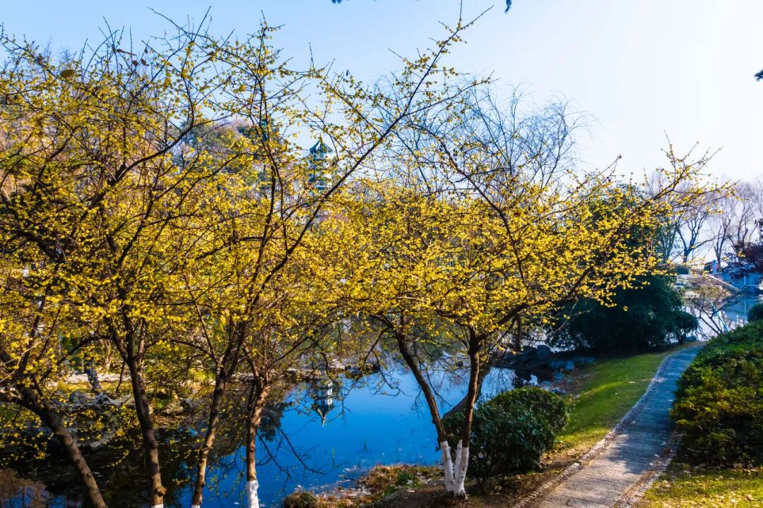 湖岸林间,随处都能遇见怒放的蜡梅